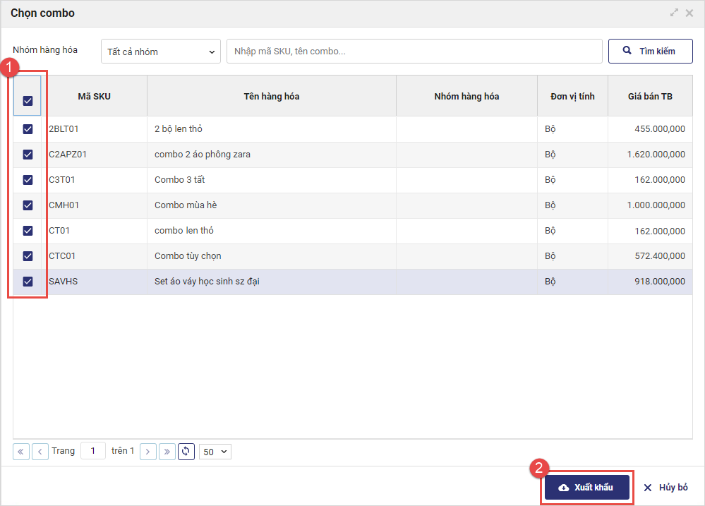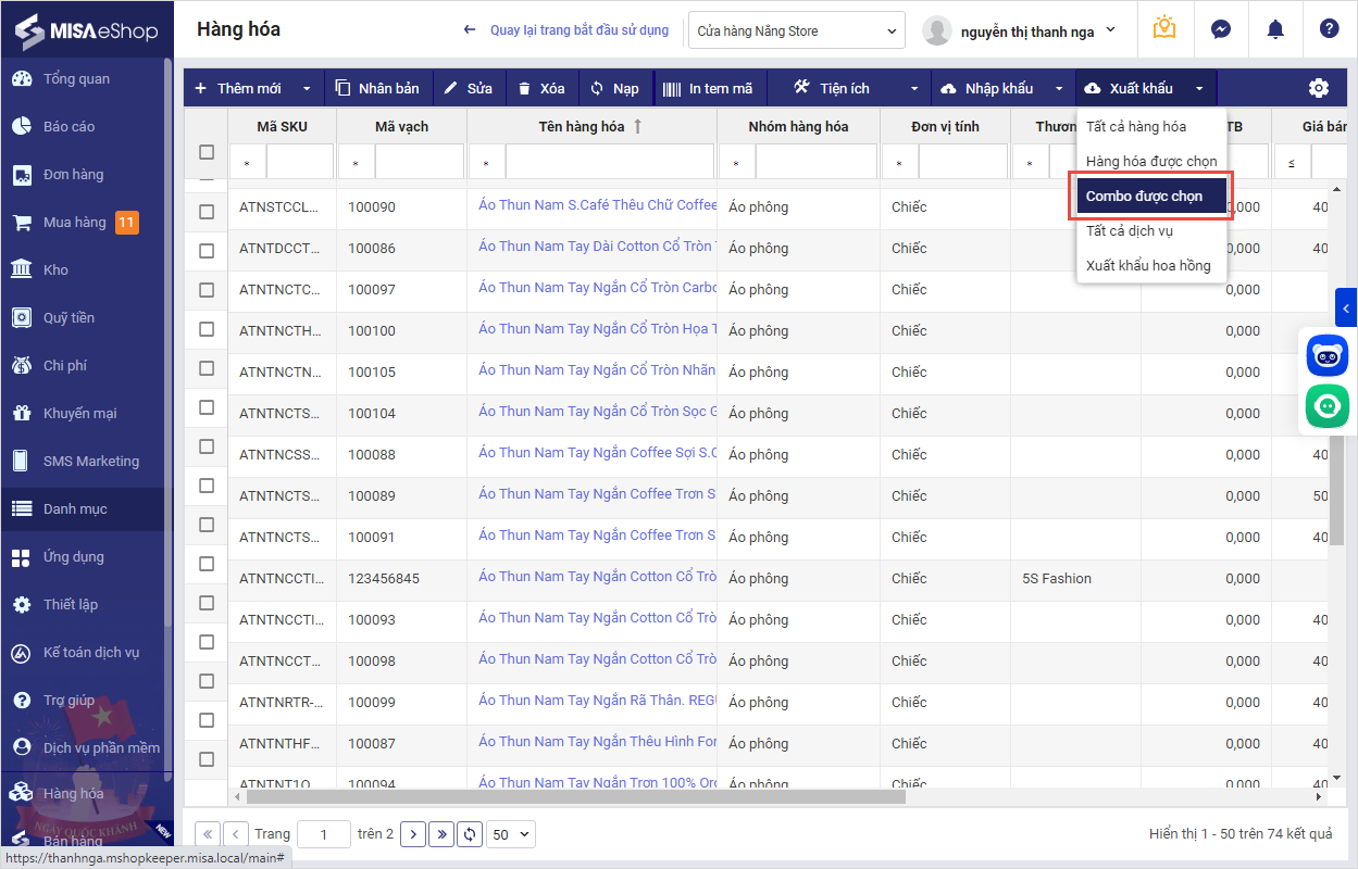 1. QLCH có thể xuất khẩu danh mục hàng hóa combo