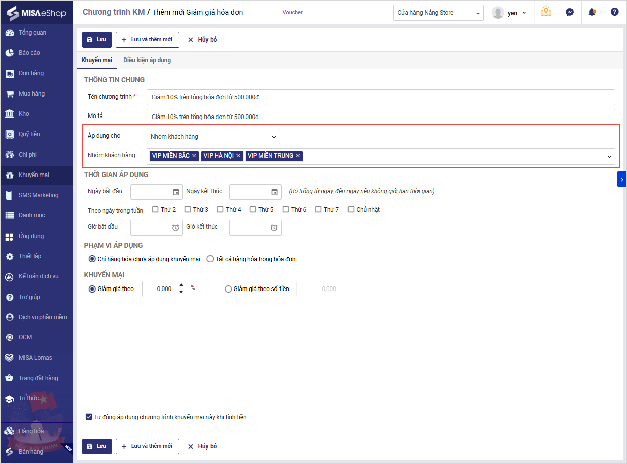 3. Cho phép chọn nhiều đối tượng cùng lúc trên một chương trình khuyến mãi