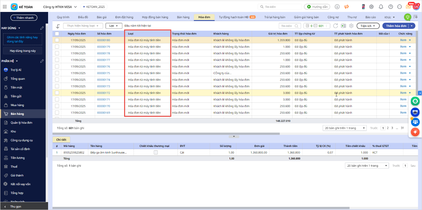 Giúp cửa hàng khi phát hành hóa đơn từ Máy tính tiền trên eshop và chuyển qua MAKT, hệ thống sẽ tự động cập nhật loại hóa đơn là Hóa đơn từ máy tính tiền