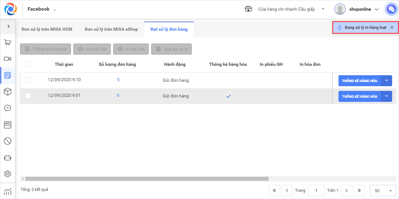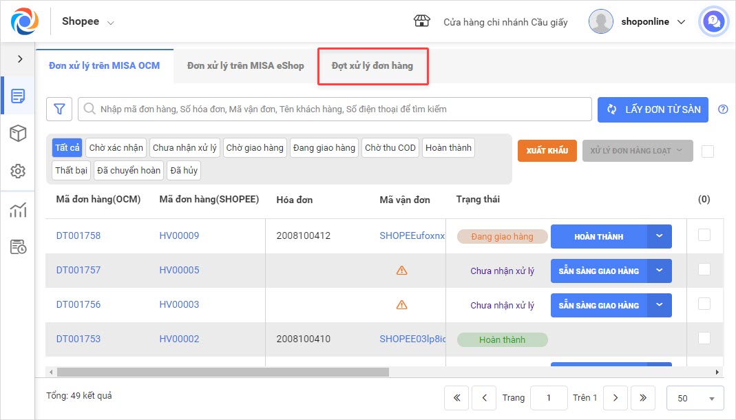 Bước 2: Tại đây, người dùng có thể xử lý lần lượt từng đợt hoặc xử lý cùng lúc nhiều đợt hàng.