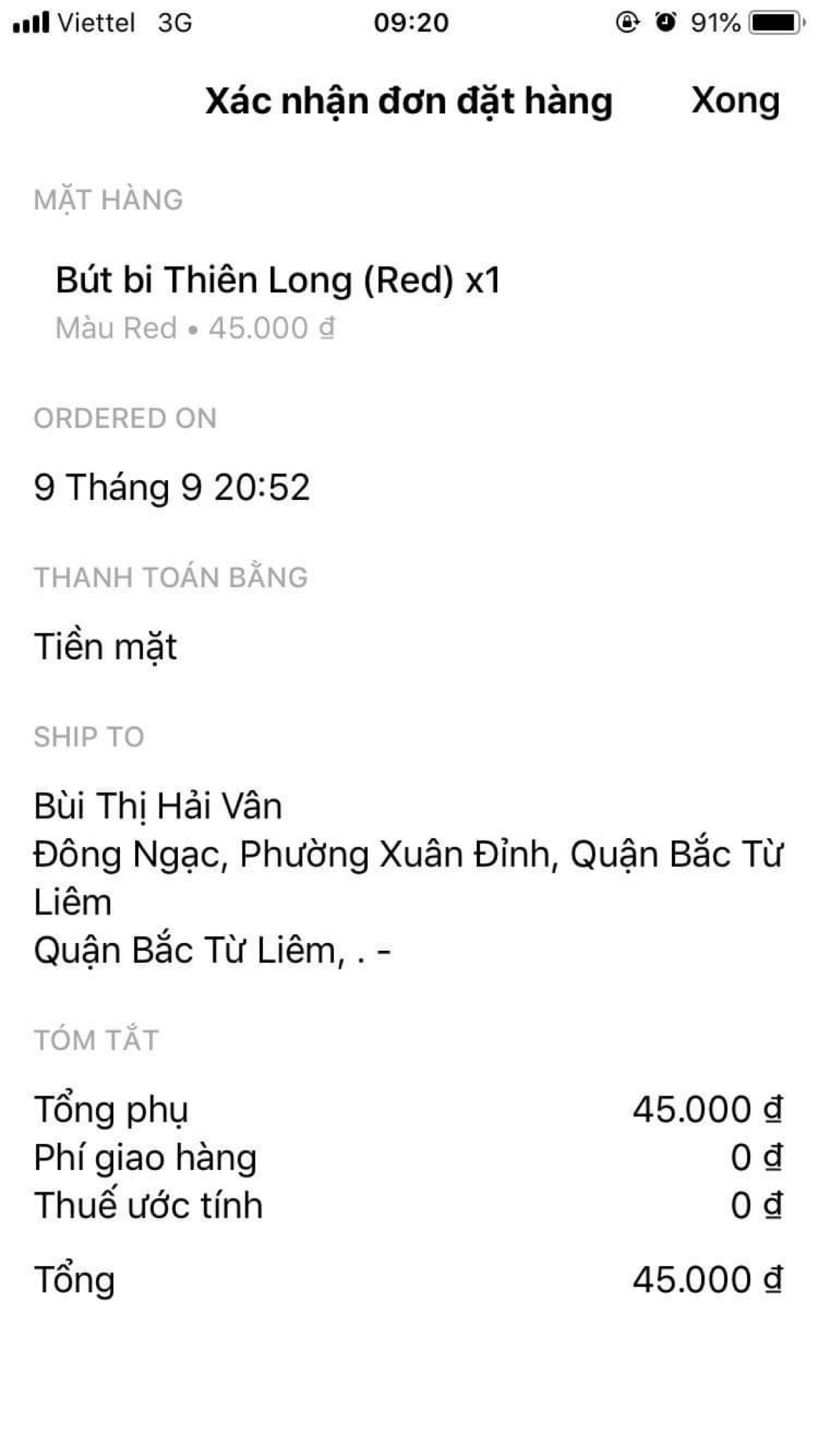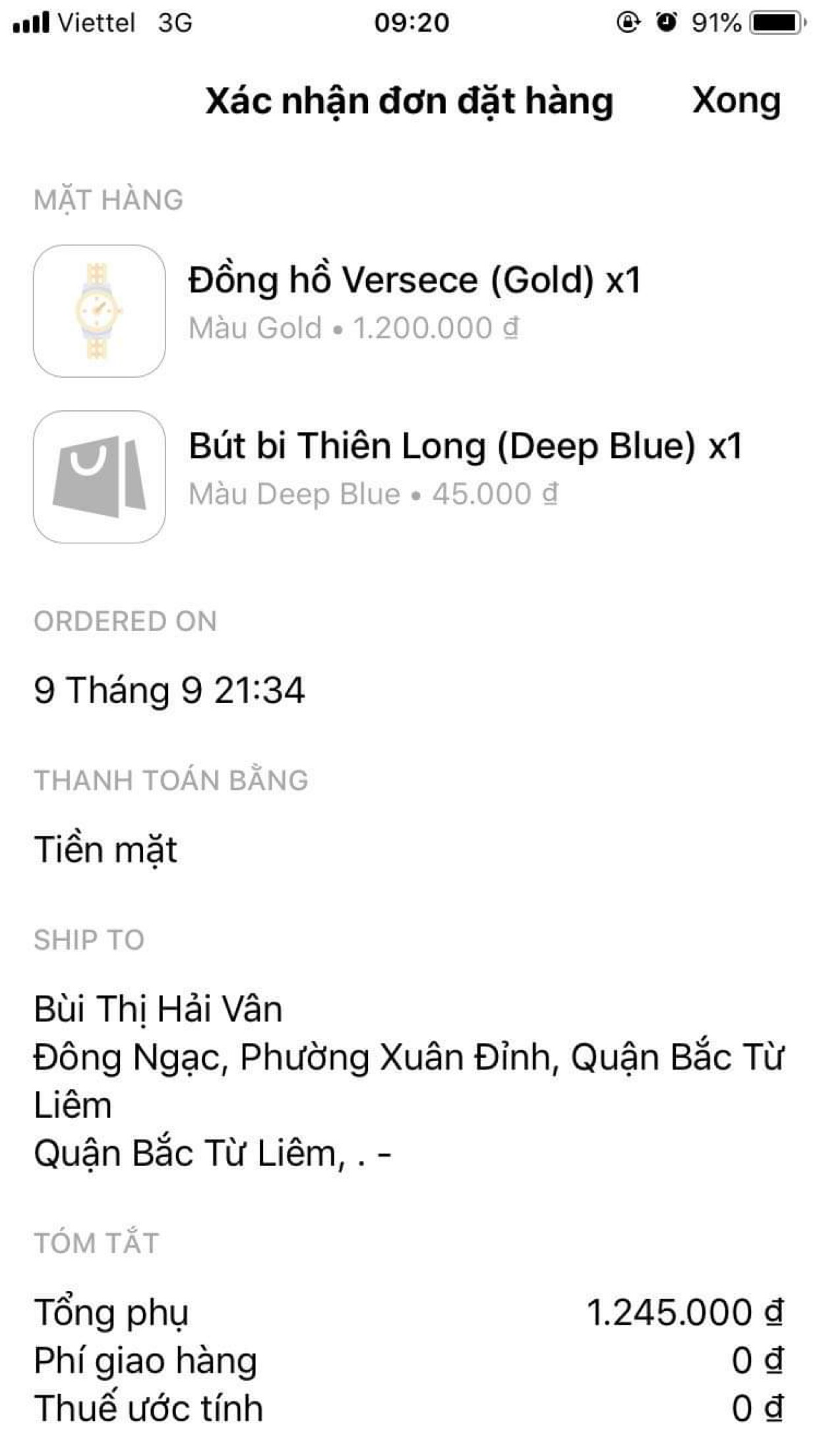 Ví dụ: Nội dung tin nhắn chốt đơn cửa hàng gửi cho khách trước và sau khi thiết lập ẩn/hiện hình ảnh sản phẩm.