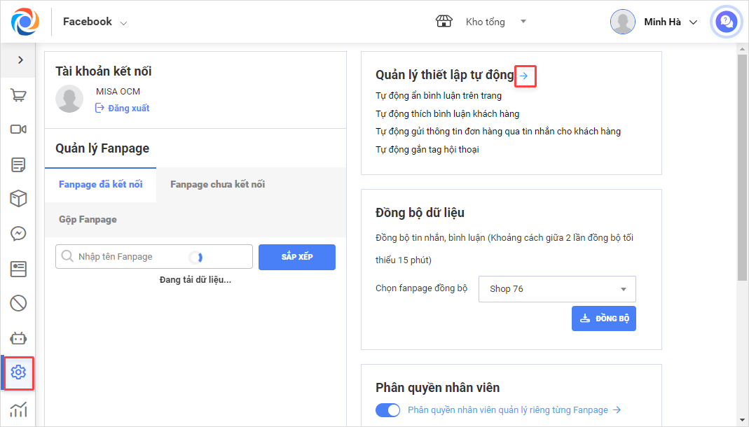 Bước 1: Trong phần Thiết lập Facebook\Quản lý thiết lập tự động.