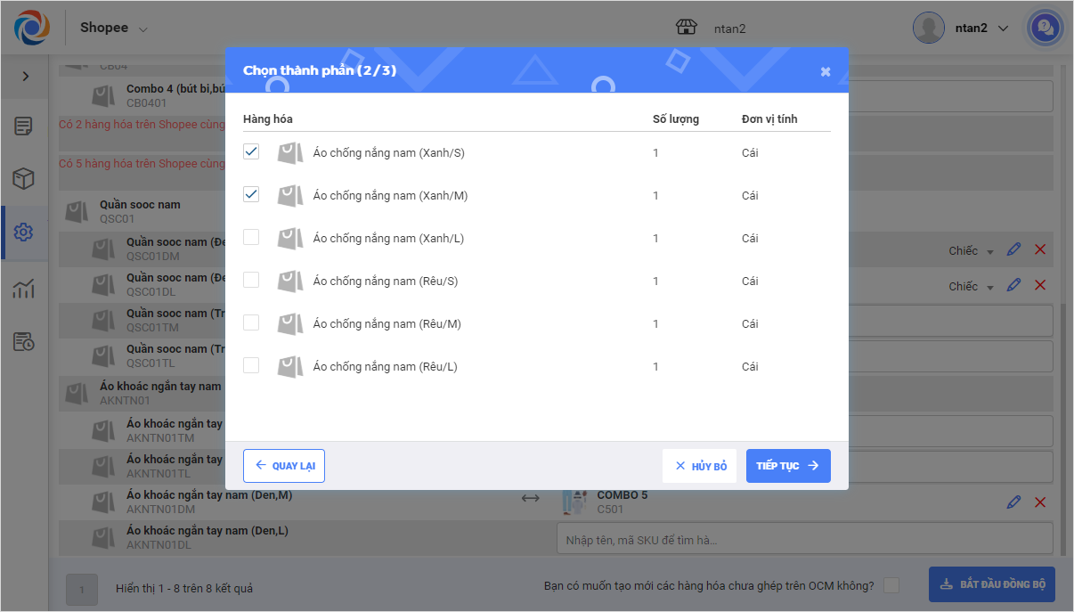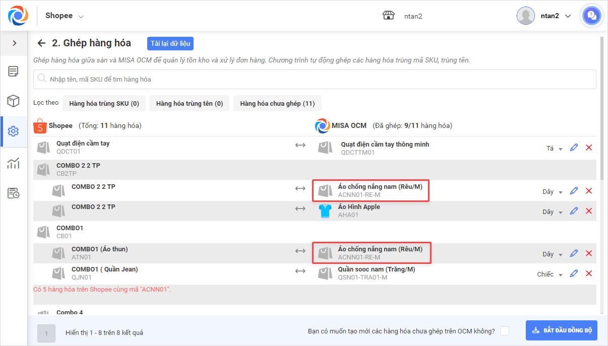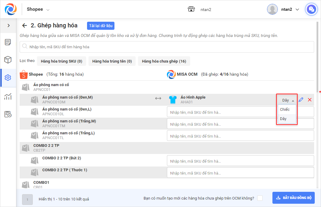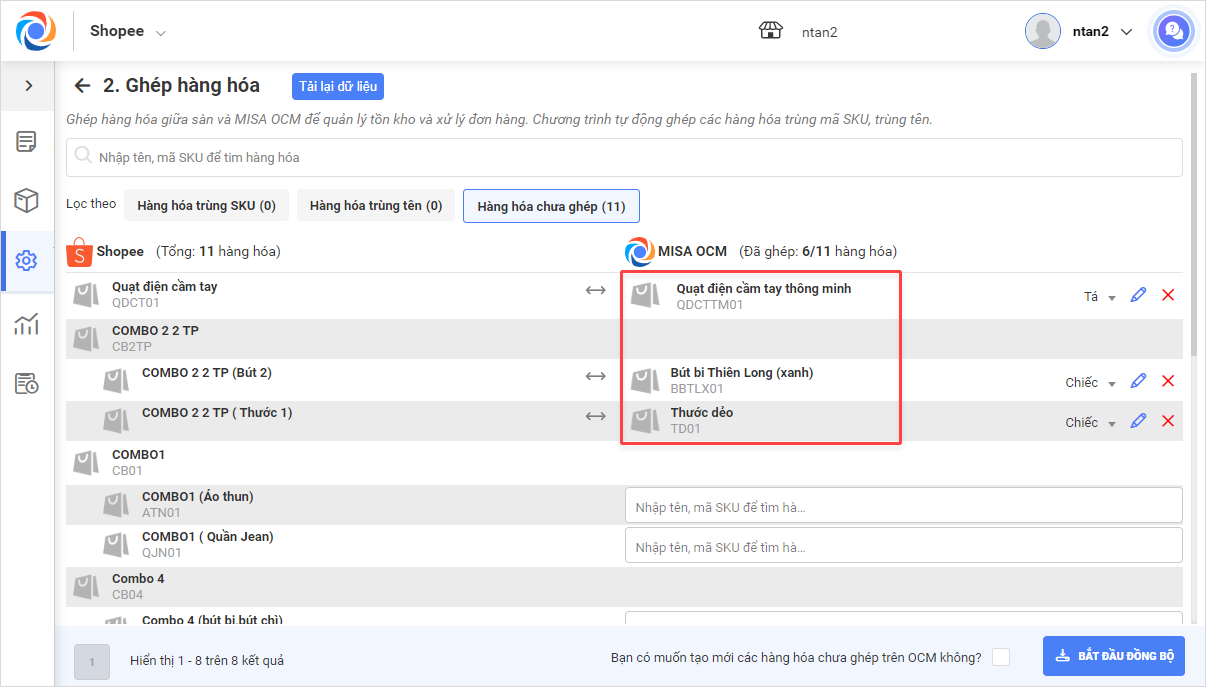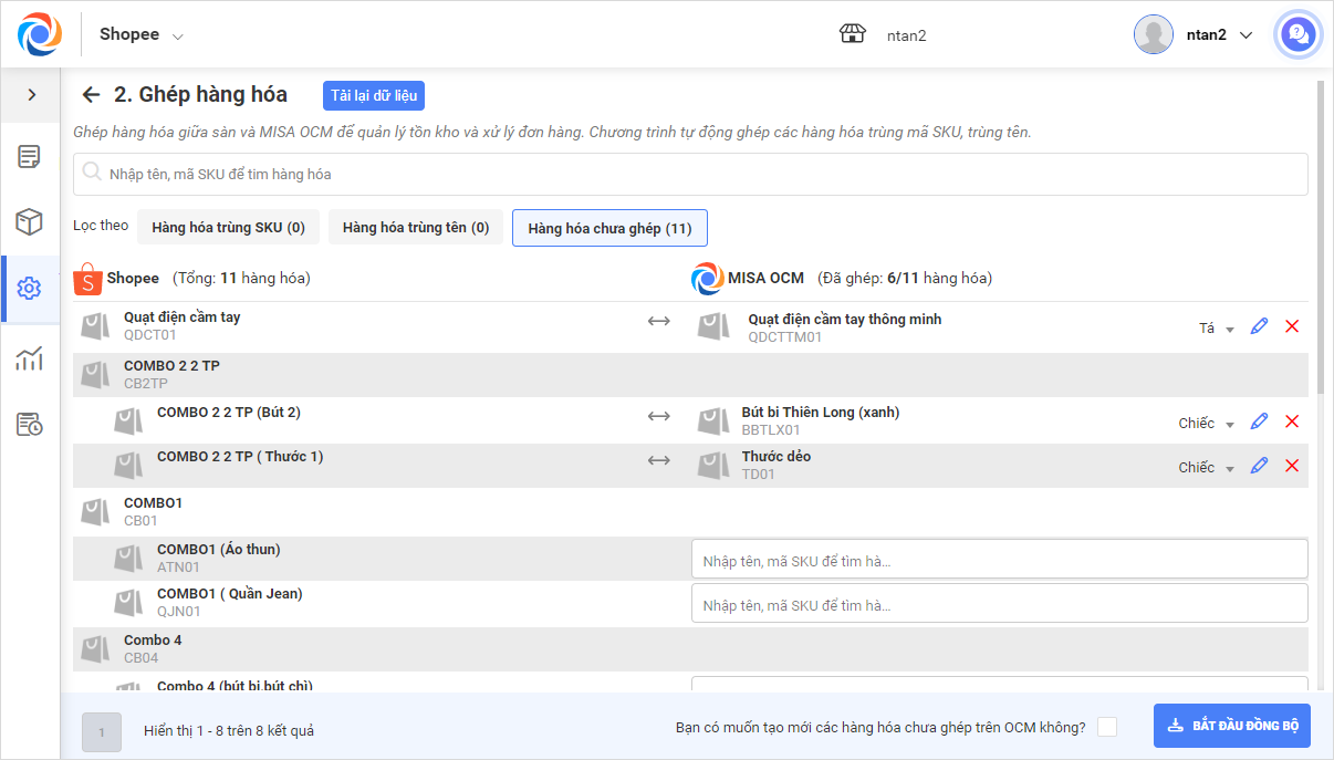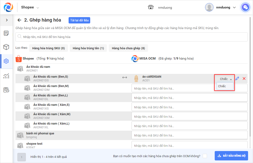 2. Ghép hàng hóa trên sàn với hàng hóa trên OCM.