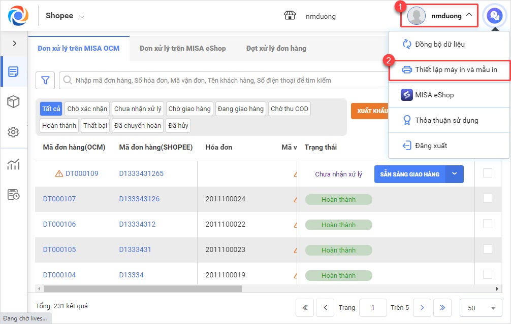 Để thiết lập mẫu in đúng theo quy định của sàn, cửa hàng thực hiện theo các bước sau: