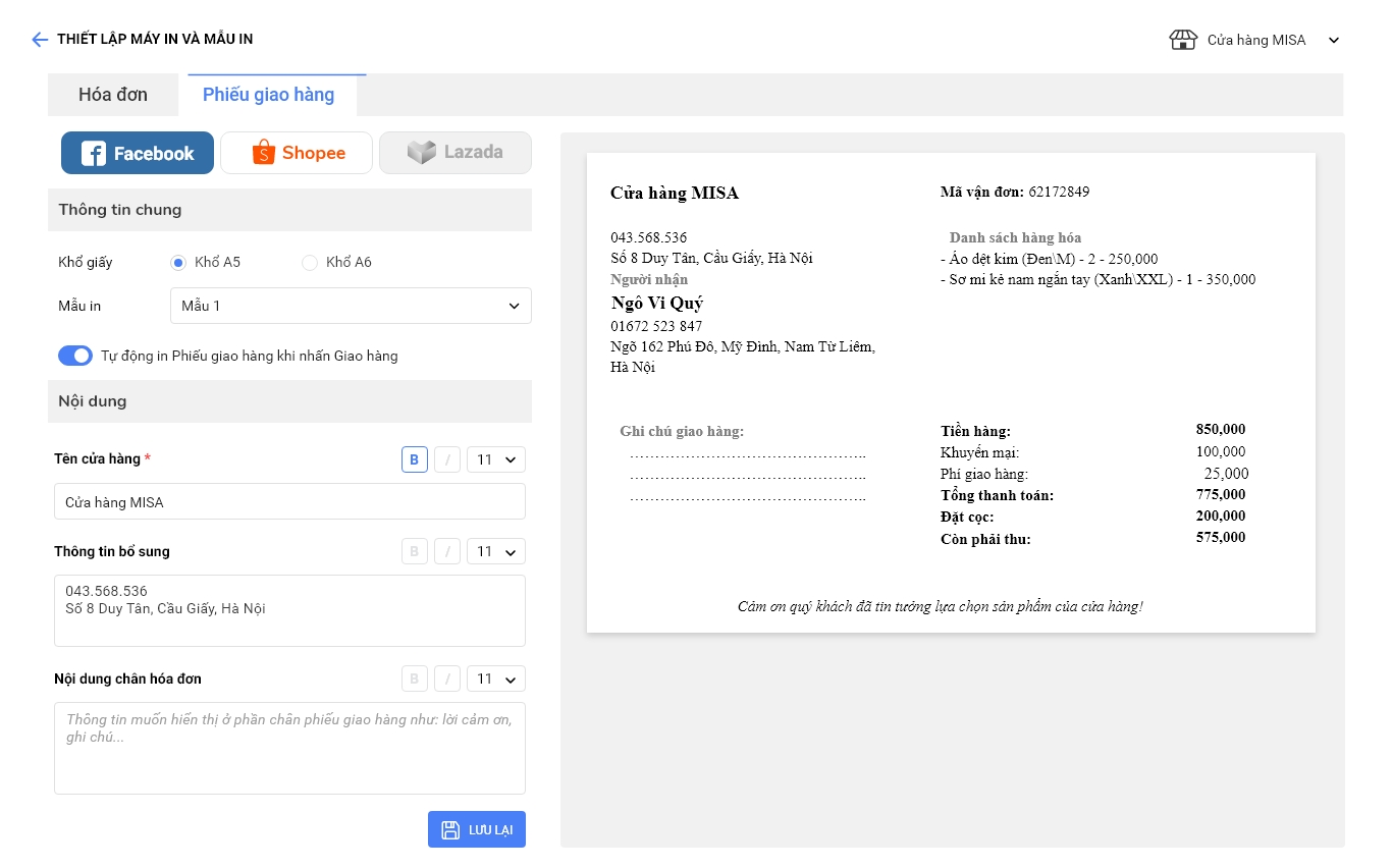 Mục đích: Hiện nay, khi in phiếu giao hàng A5 khổ ngang, phiếu giao hàng sẽ in ra 2 tờ, rất tốn giấy.