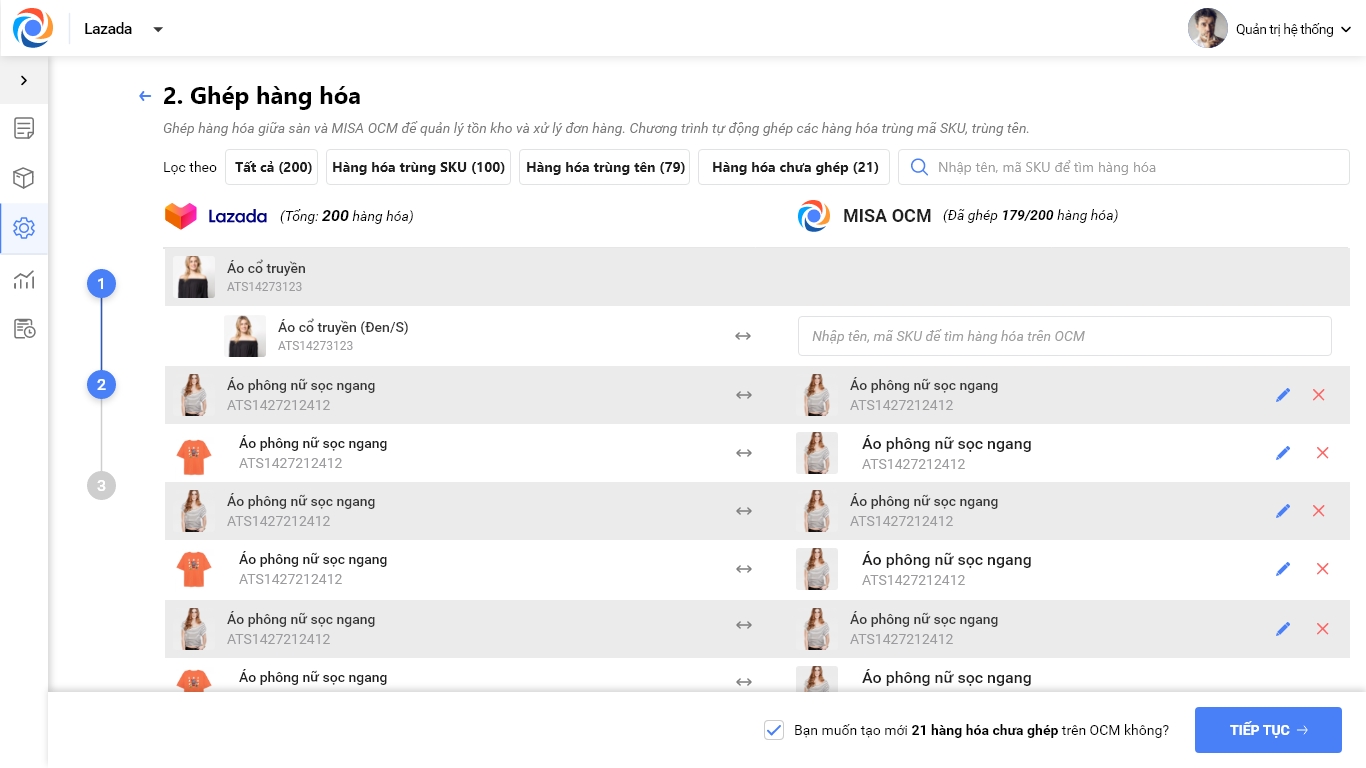 Bước 3: Ghép hàng hóa trên Lazada với hàng hóa trên OCM.