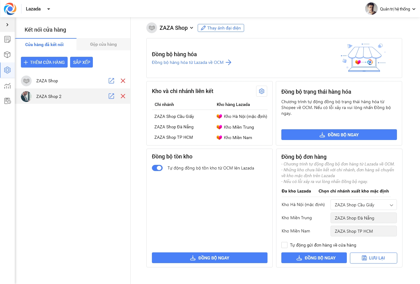 Cửa hàng có thể liên kết kho trên Lazada với kho của các chi nhánh trên eShop.