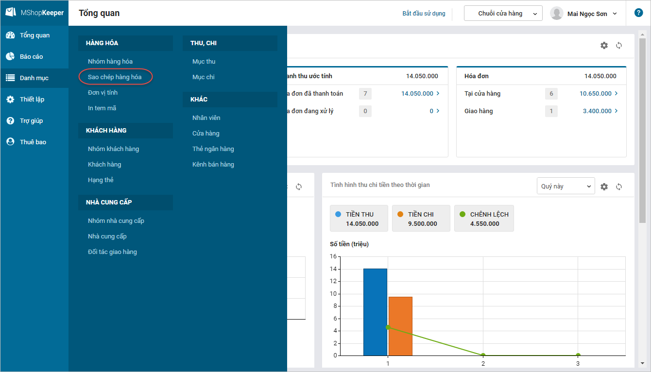 - Nhấn chọn Danh mục/Sao chép hàng hóa.