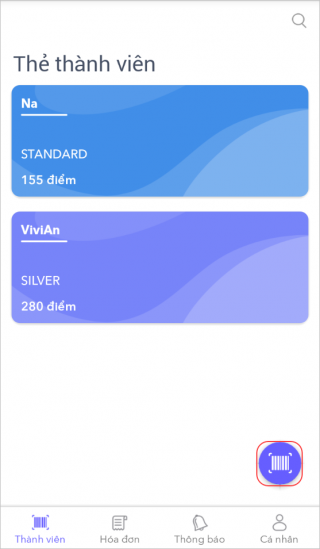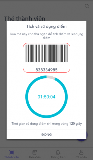 - Chương trình sẽ hiển thị mã thẻ thành viên, khách hàng cung cấp mã thẻ này cho thu ngân để ghi nhận thông tin và tích điểm.
