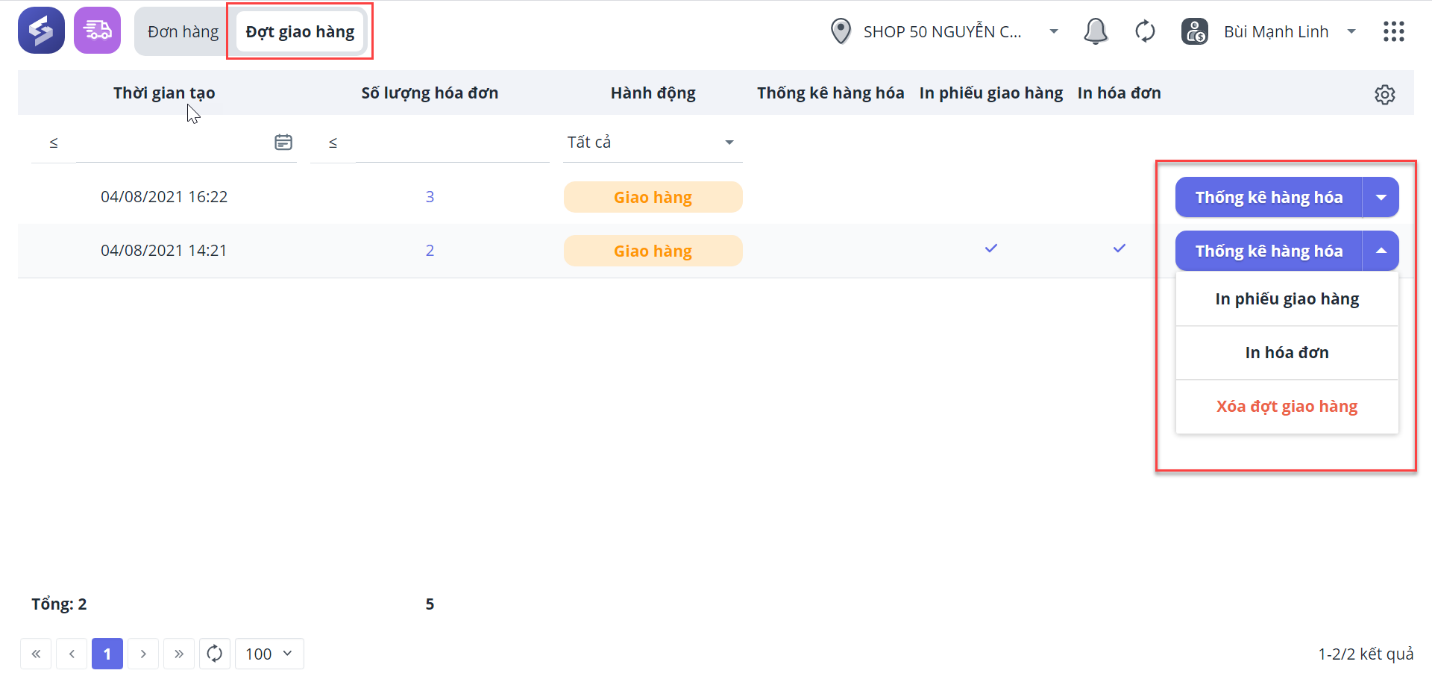 2.1. Tạo đợt giao hàng với các đơn đặt tại cửa hàng