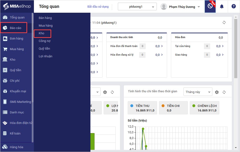 Sau khi áp dụng mã ưu đãi cho khách hàng, quản lý có thể theo dõi doanh thu bán hàng và chương trình khuyến mại đã áp dụng theo các bước sau: