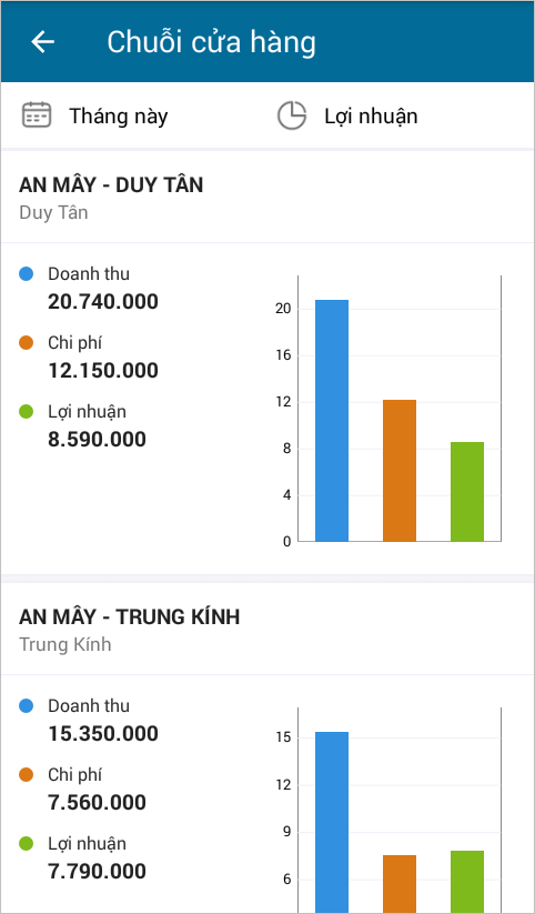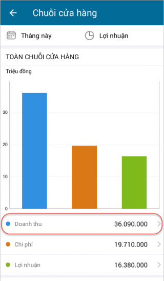 - Tại đây, quản lý chuỗi có thể xem được tình hình hoạt động kinh doanh tại từng cửa hàng hàng hoặc toàn chuỗi.