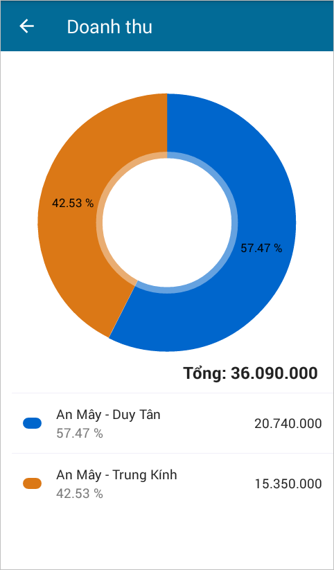 - Để xem Tỉ trọng doanh thu/chi phí/lợi nhuận theo chi nhánh, nhấn chọn thông tin Doanh thu/Chi phí/Lợi nhuận tương ứng trên thông tin toàn chuỗi.