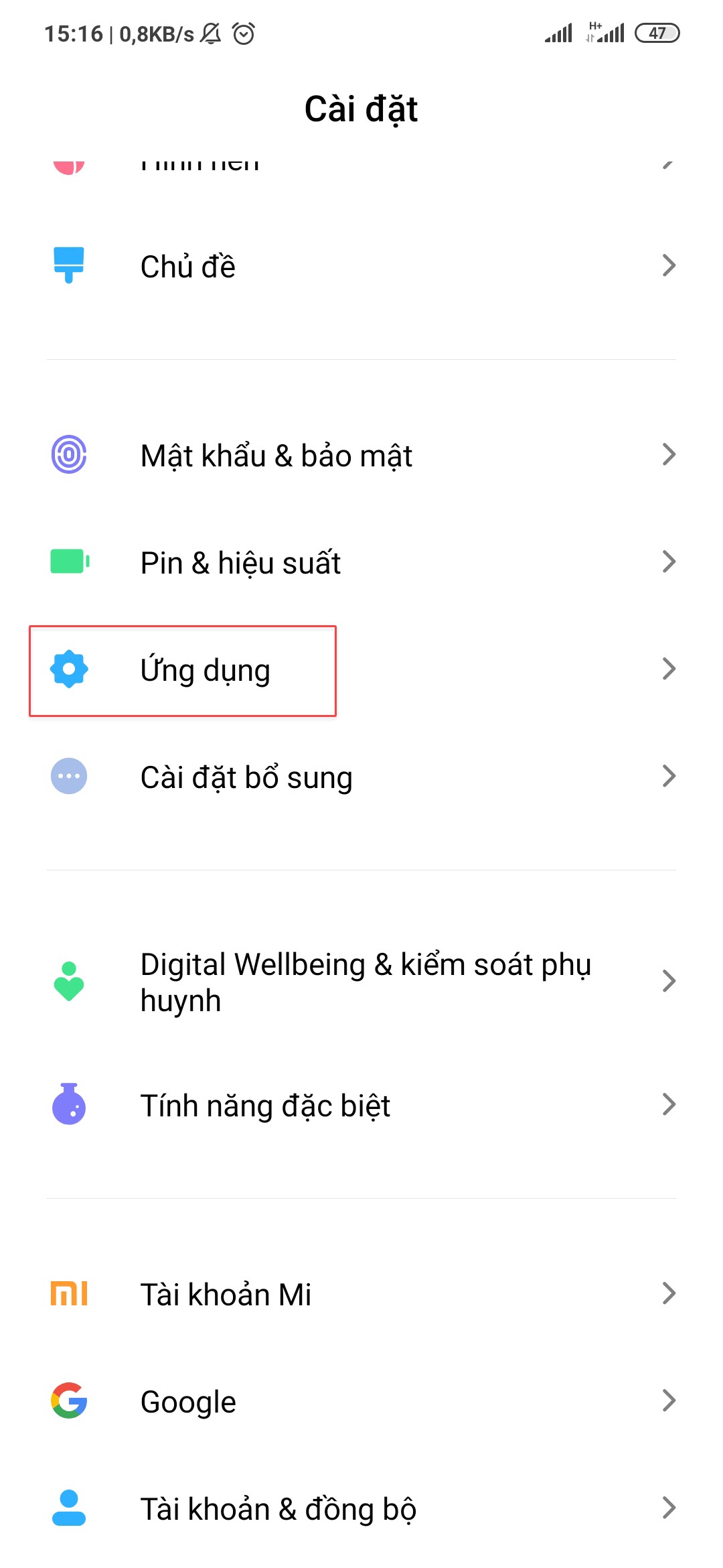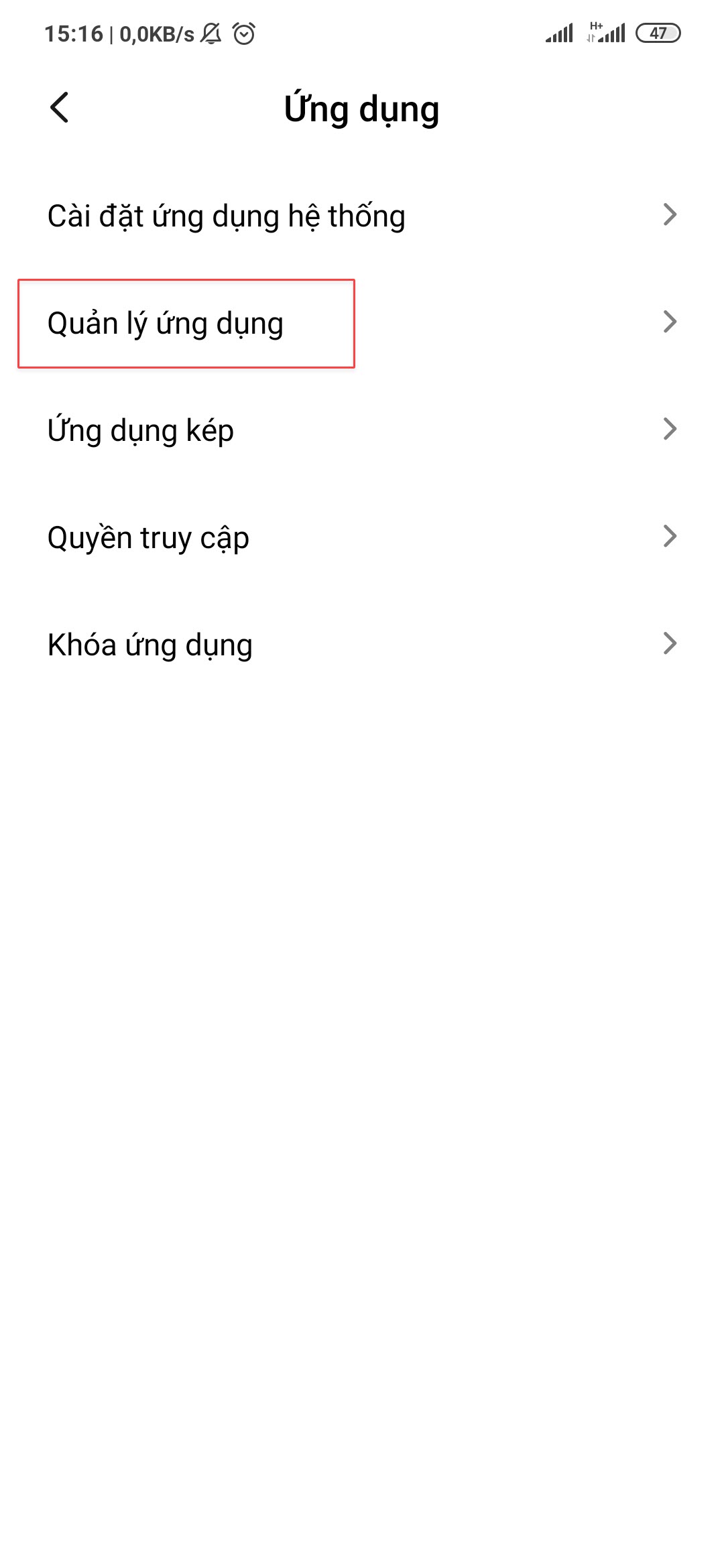 • Vào phần Cài đặt trên điện thoại, chọn Ứng dụng\ Quản lý ứng dụng.