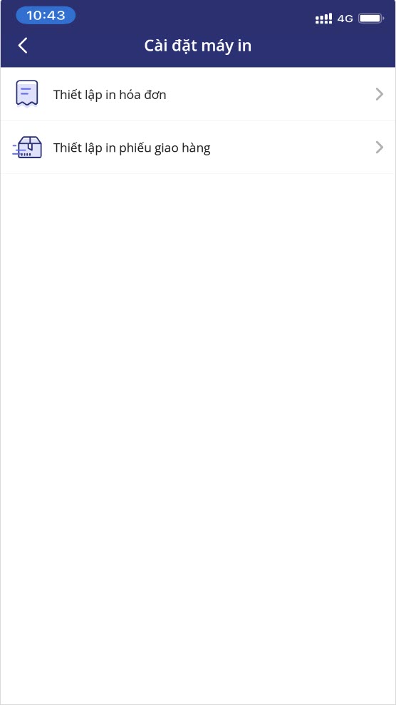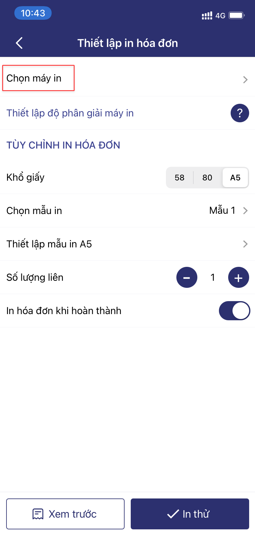 Thiết lập máy in và mẫu in trên điện thoại