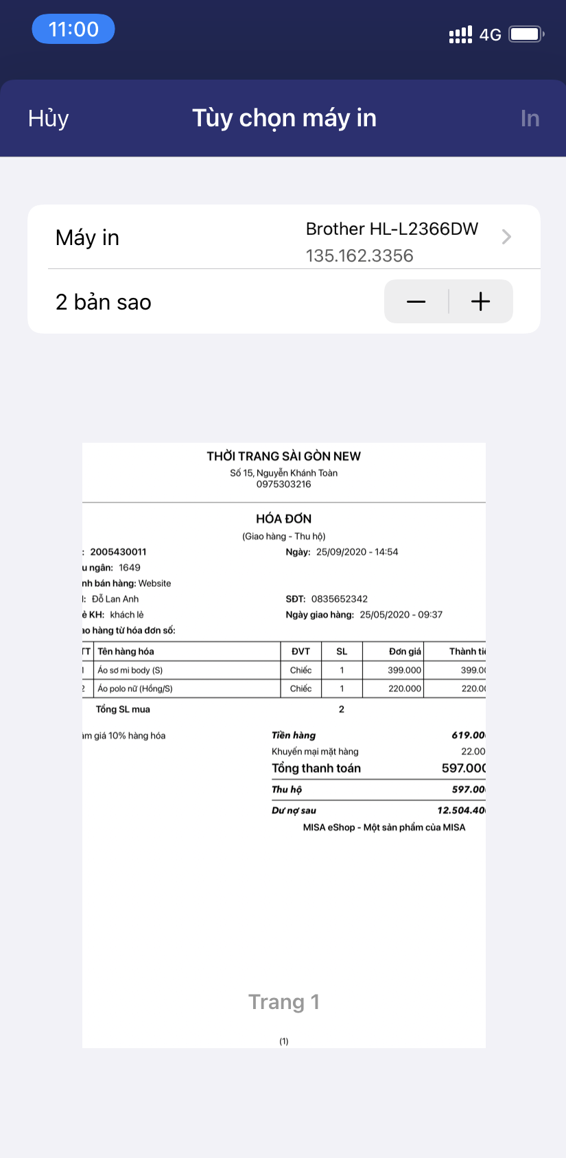 1. Với hệ điều hành IOS: chỉ hỗ trợ in trên máy in A5 có hỗ trợ AirPrint (in từ hệ điều hành). Xem danh sách các máy in hỗ trợ AirPrint tại https://support.apple.com/en-us/HT201311. Hiện tại, cửa hàng có thế in qua dòng máy Brother HL-L2366DW.