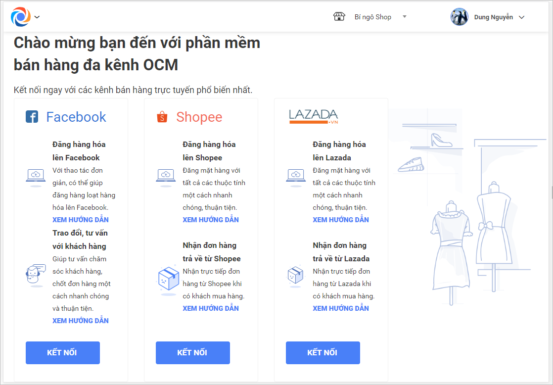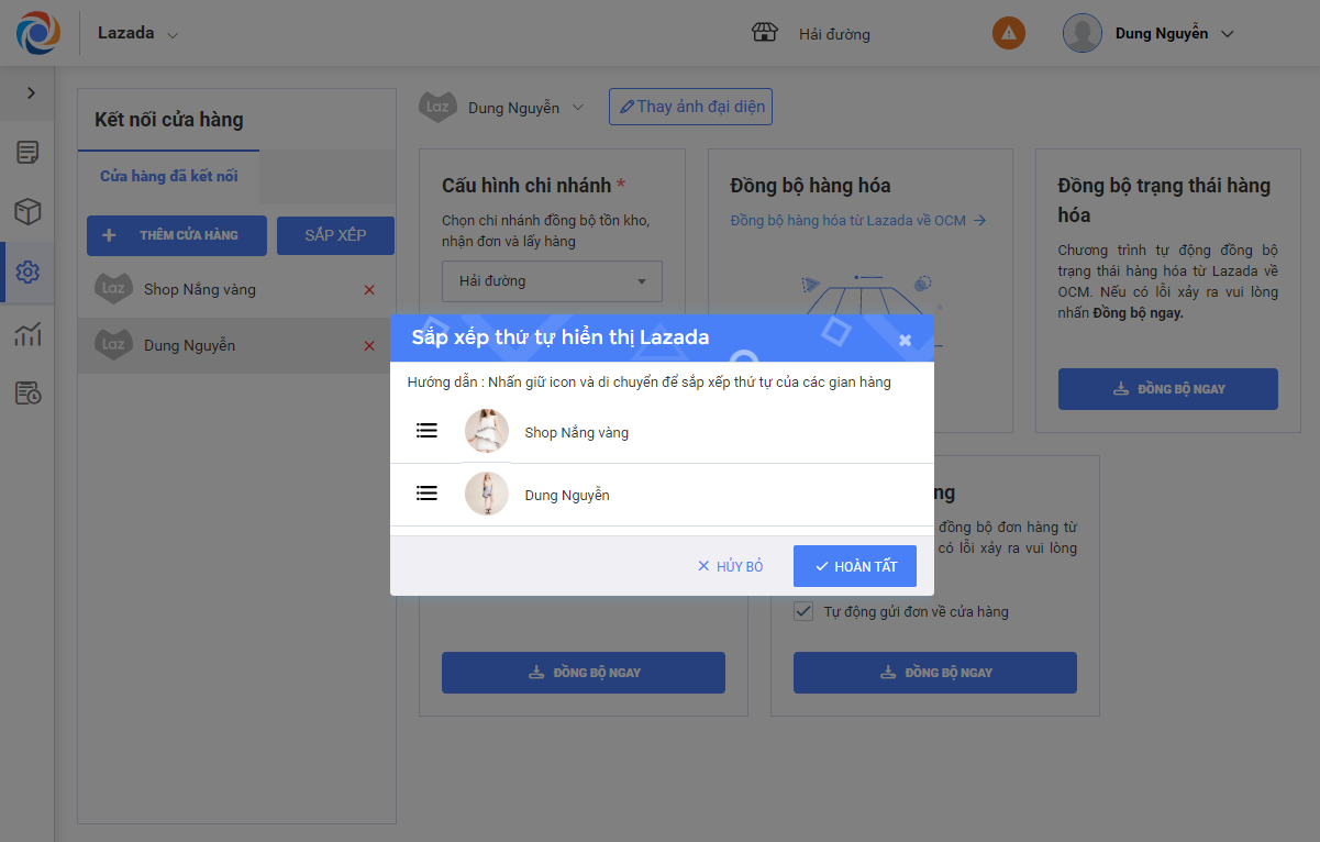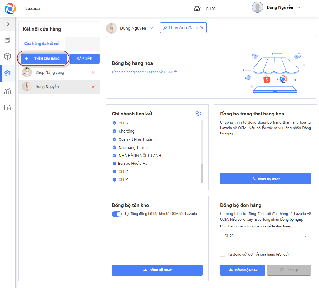 Giúp quản lý kết nối OCM với tài khoản bán hàng trên Lazada.