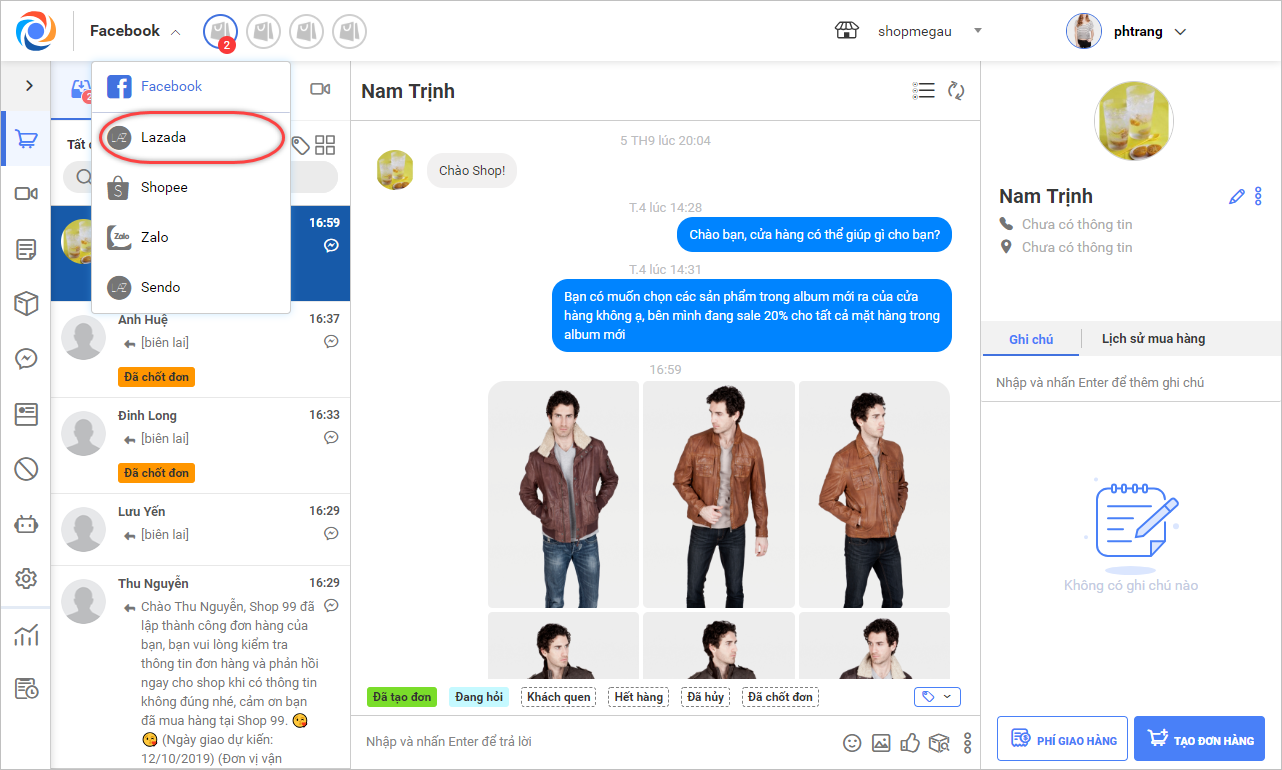 trên thanh menu, chọn Lazada.
