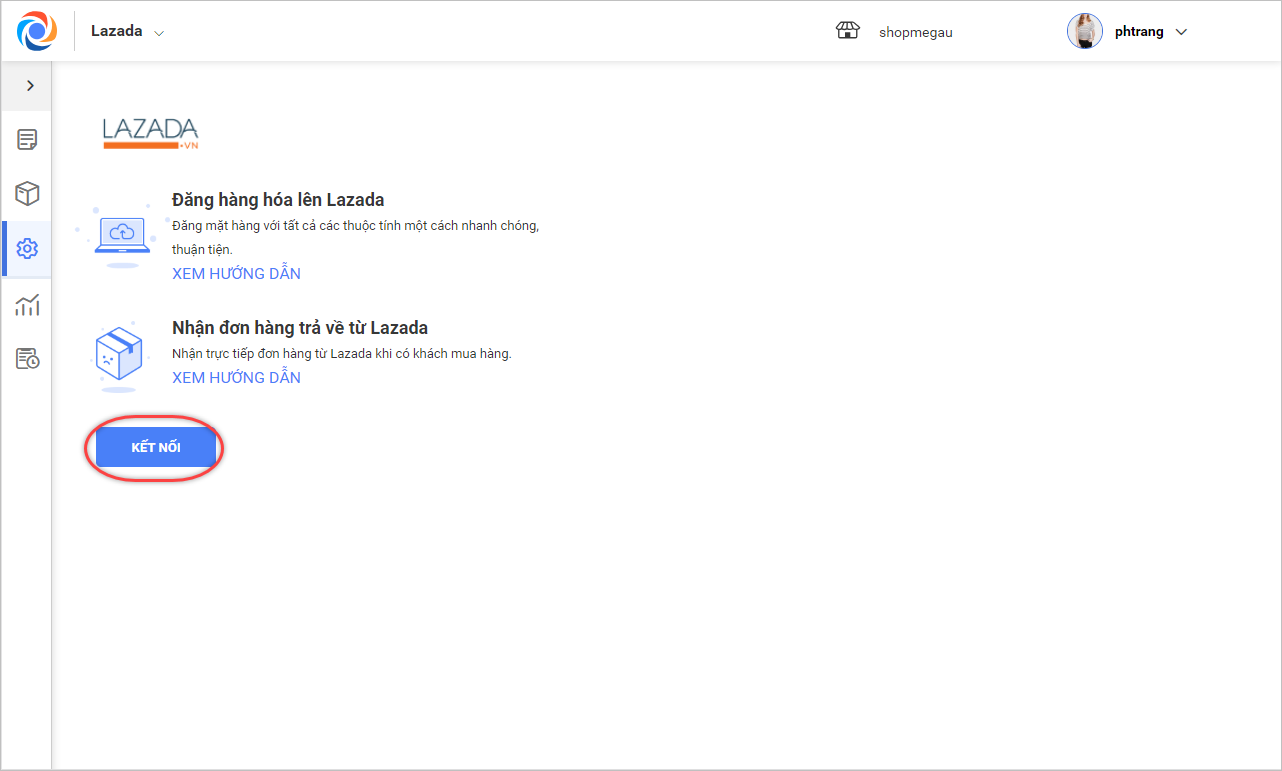 2. Kết nối tài khoản Lazada: