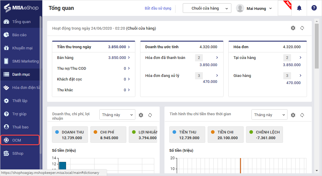 1. Trên phần mềm MISA eShop, nhấn OCM.