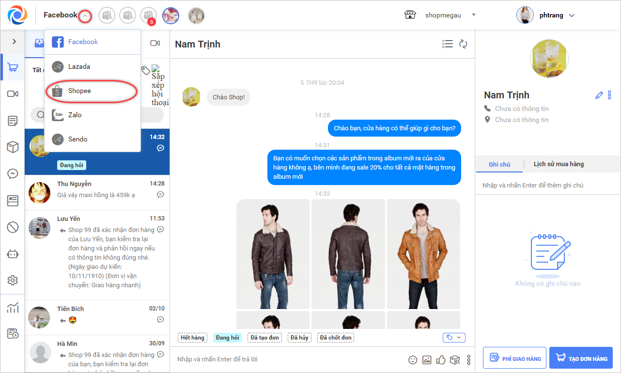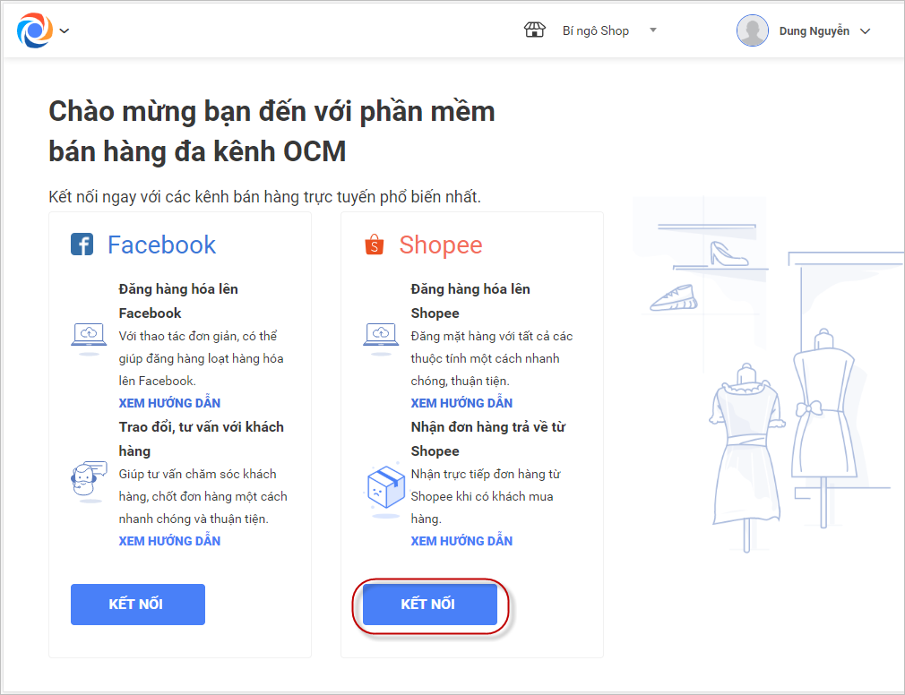 Giúp quản lý kết nối tài khoản bán hàng trên Shopee với OCM.