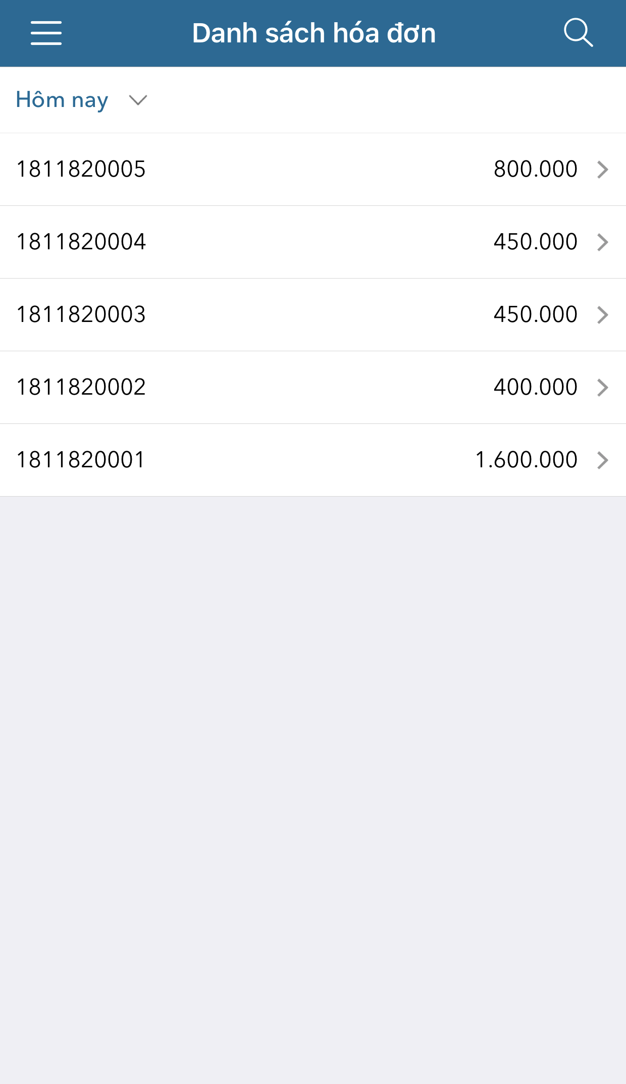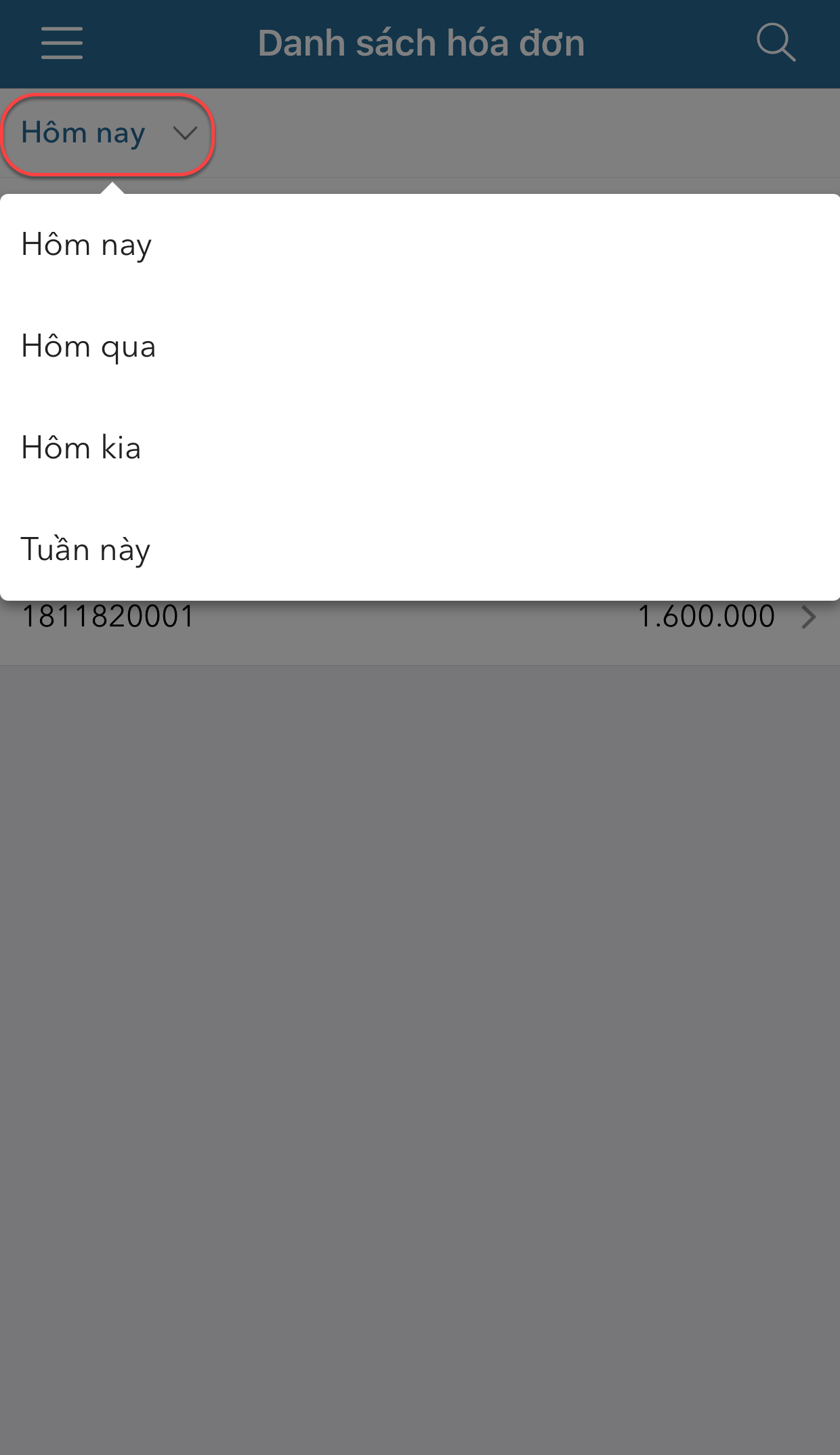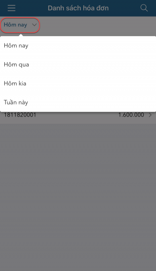 • Nhấn biểu tượng , chọn Danh sách hóa đơn.